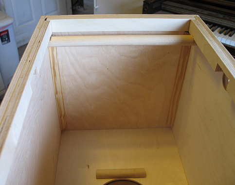 Then I flattened one side of a 3/4" dowel and glued it just above the soundhole in the back, to serve as a kind of little "handle" for when I want to move the cajón.