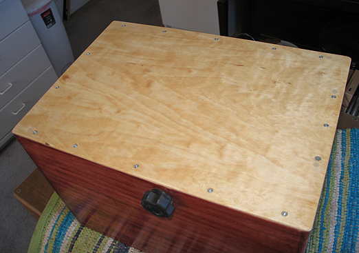 Another thing I did, while the tapa's finish was drying, was to polish the rest of the box a bit with some Meguiar's #7 (Show Car Glaze), after rubbing it down with a white Scotchbrite synthetic steel wool pad. It is now squeaky-smooth!