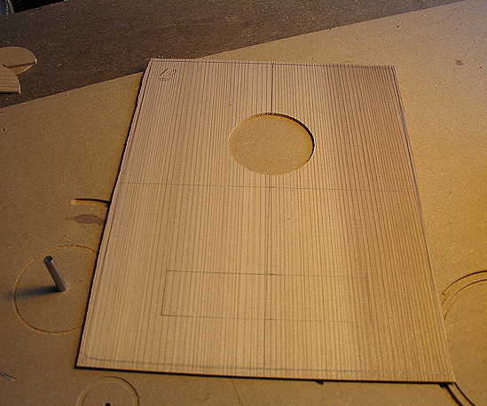 Tuesday, November 12th, 2013: Today I did a few things. I first routed out the 2" diameter soundholes with my Stew-Mac soundhole jig attached to the router base.