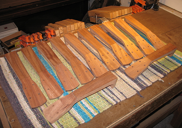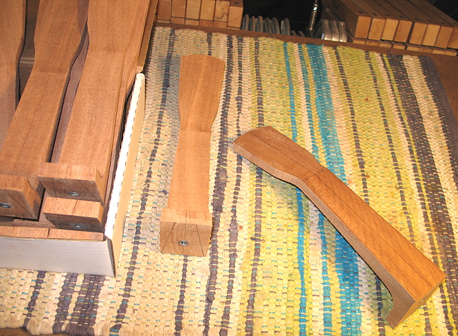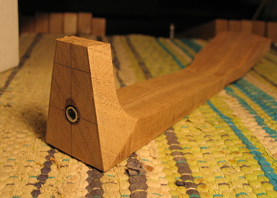 The heels are left at their present length (overly long), so that they can be fitted later to the particular cigar box depth. (All the cigar boxes are different sizes.) The final thing to do on the neck is to mark and drill the tuner post holes. Then I will need to write up an instruction sheet for the students.