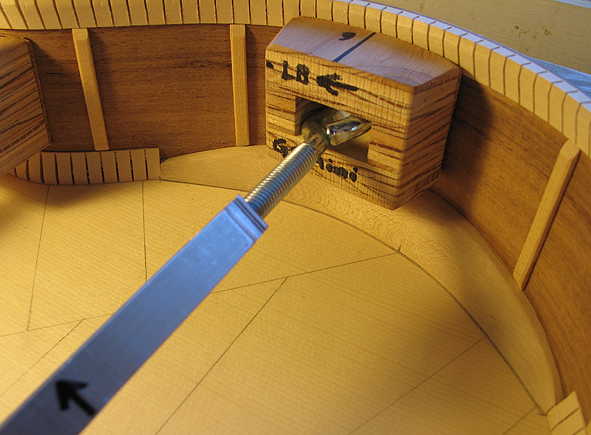 (1) When I got up today, the first thing I did was to sharpen my scraper (nothing like a nice, sharp scraper!!!). Then I carefully scraped the rosette down close to flush to the spruce.