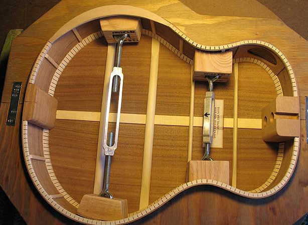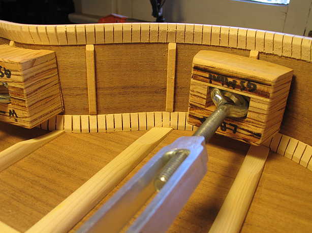 And here I am gluing the back onto the sides in the go-bar deck, using the clamping caul pictured above.