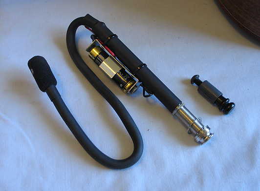 Next, I installed the endpin. This endpin is kind of different, because I had decided to, later on, ultimately install the GHS Acoustic Soundhole Microphone (shown in the photo below). I'm going to try this soundhole mike out because, while I like the idea of having a pickup in this guitar, I don't really like the idea of having an undersaddle pickup or a soundhole pickup. I wanted something that would interfere the least with the acoustic sound, should I want to play the guitar acoustically, while still having the option of amplifying the guitar.