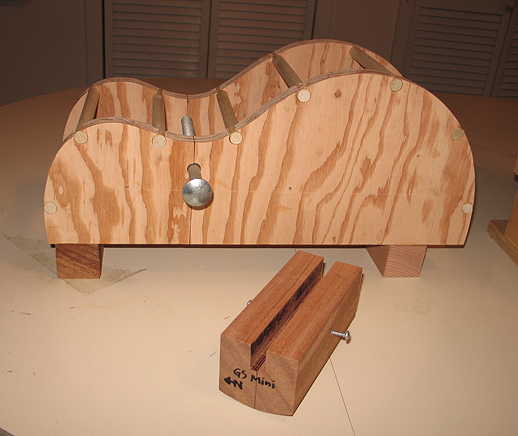 The next task was to make a bending form. At first I was planning to just bend the sides by hand (which is fairly easy to do and kind of relaxing), but then I thought of how difficult it sometimes is to bend the bindings by hand (they twist and sometimes crack on me). So, I changed my mind and decided to make the bending form.