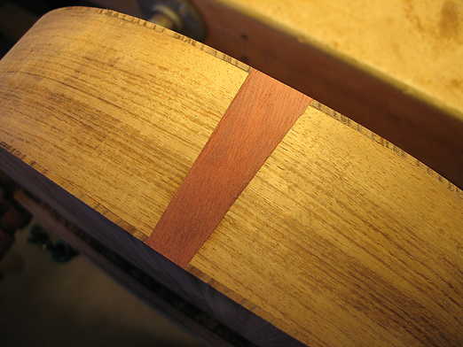 I have decided to just do a simple bloodwood binding, without any purfling strips, on this instrument. I think simpler is better here!