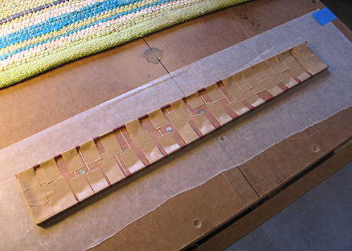 Tonight I will play around with the strips and figure out how I want to do the binding --- I haven't decided yet whether or not I want to have any purfling strips with the bloodwood binding. I might just go for a simpler look, and just do the bloodwood, sans purfling (on both the top/back and sides). With all the stripiness of the Tasmanian blackwood, simpler might be better. (Not to mention how much easier it will be to install the binding that way!)