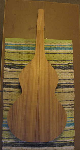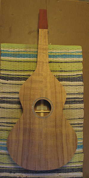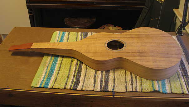 My bloodwood for the bindings just arrived today --- I had ordered a neck lamination board (about 1/4" thick by 5" or so wide, and 48" long) that I can slice into binding strips. Chris Herrod, of LMI, made this great suggestion, as a solution to my problem of not being able to easily find the longer binding strips needed for this instrument. Thanks, Chris!!!