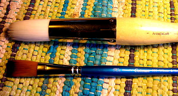 The weather has been very cold lately, so I have decided to brush on the finish, instead of my usual spray finishing. I couldn't find any local stores that carried the Da Vinci brush, so I found these two brushes from a Michael's craft store in my area. One is an "Artist's Loft" brush, some sort of watercolor wash brush with a very soft, large. round synthetic brush; the other is a Cotman 999 wash brush. Both seem as if they will brush on the waterbase finish quite smoothly, with little or no (I hope) brush marks. I did a test brushing of the waterbase finish after I got home with these brushes, and it seems as if they might work.