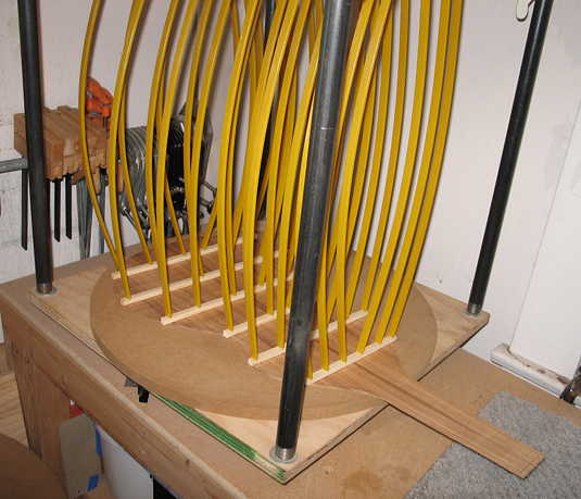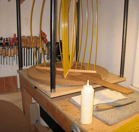Below are the six braces for the back (3/8" square) laid out in their positions (not glued yet):