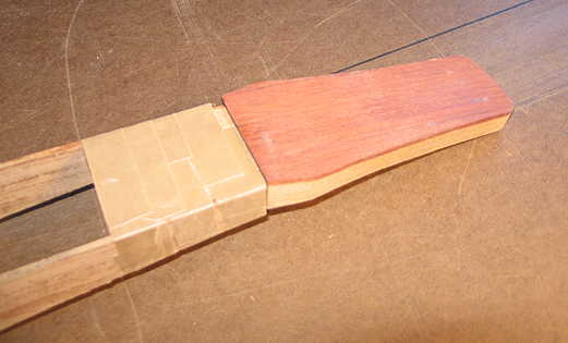 (Oops...I only realized after I glued it, that I probably should have drilled the tuner holes in the peghead BEFORE doing the glue-up! It's not really a big problem, but would have been much easier that way.)
